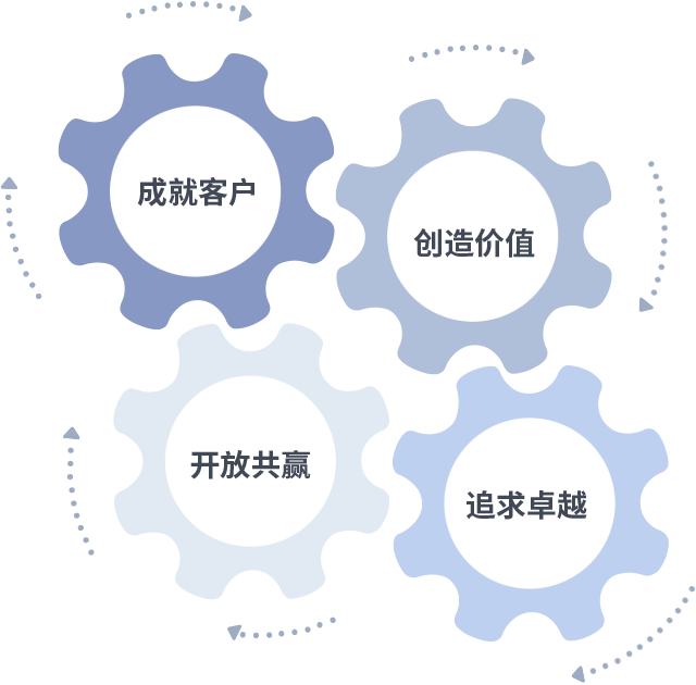 成就客户是一切决策的出发点,创造价值是衡量所有工作的标准,追求卓越是A8国际做事做人的态度,开放共赢是A8国际的格局也是最终的结果。价值观的齿轮环环相扣,推动着组织里的每个人不断向前。